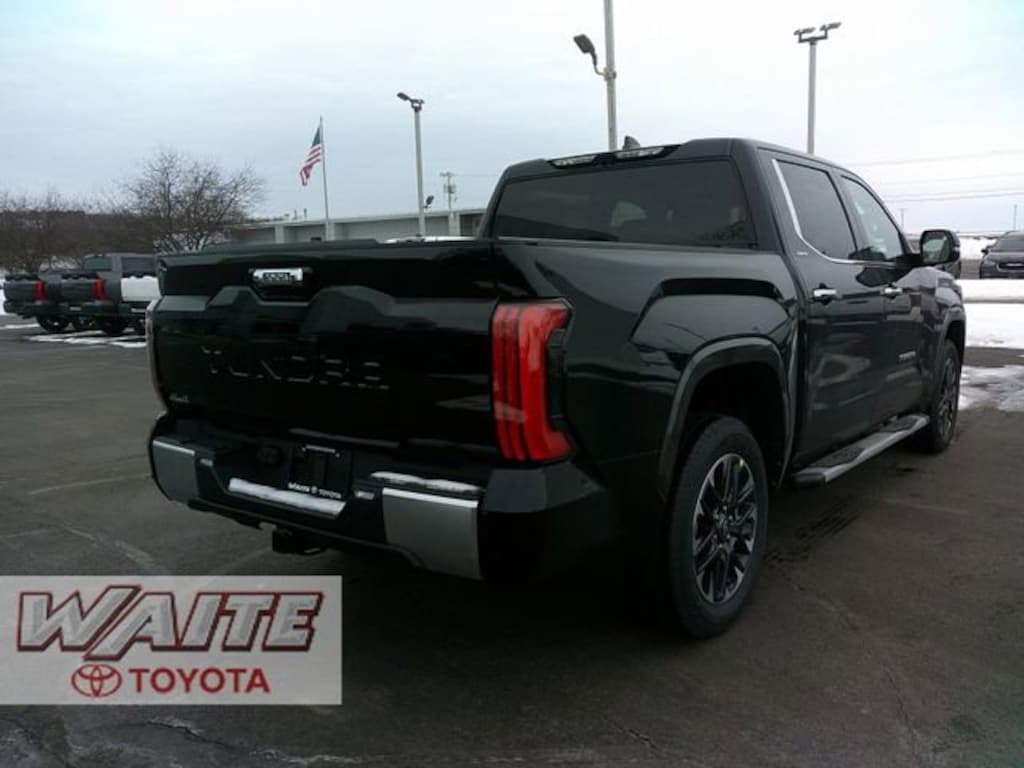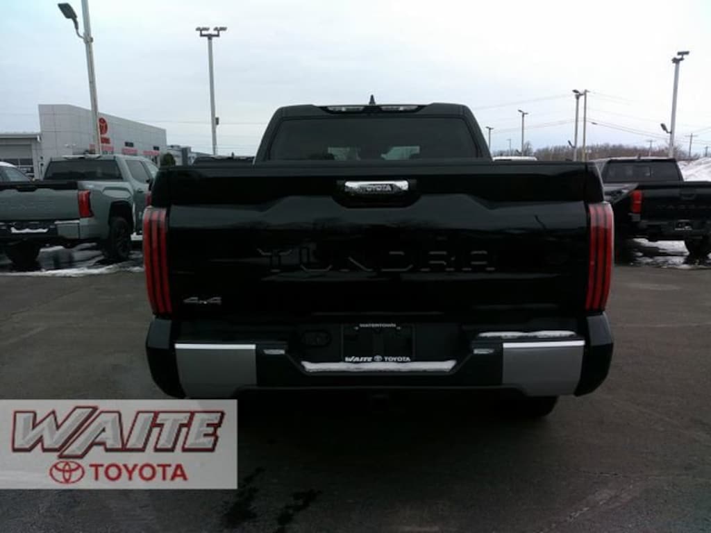 2026 Toyota Tundra LimitedToyota Safety Sense 2.5, 8-Way Power Adjustable Heated/Ventilated Front Seats, Apple CarPlay/Android Auto, Auto High-beam Headlights, Auto-dimming door mirrors, Automatic temperature control, Electronic Stability Control, Emergency communication system: Safety Connect (up to 10-year trial subscription), Exterior Parking Camera Rear, Front dual zone A/C, Garage door transmitter: HomeLink, Heated Leather Steering Wheel, High Grade Full LED Headlamp, Memory seat, Panoramic View Back Monitor, Panoramic View Monitor Package, Premium Package, Steering wheel mounted audio controls, Towing Package, Turn signal indicator mirrors, Ventilated front seats. 17/22 City/Highway MPGWaite Toyota is family owned and operated, serving Northern New York since 1929.