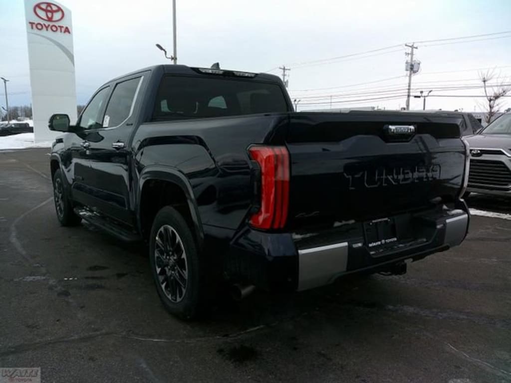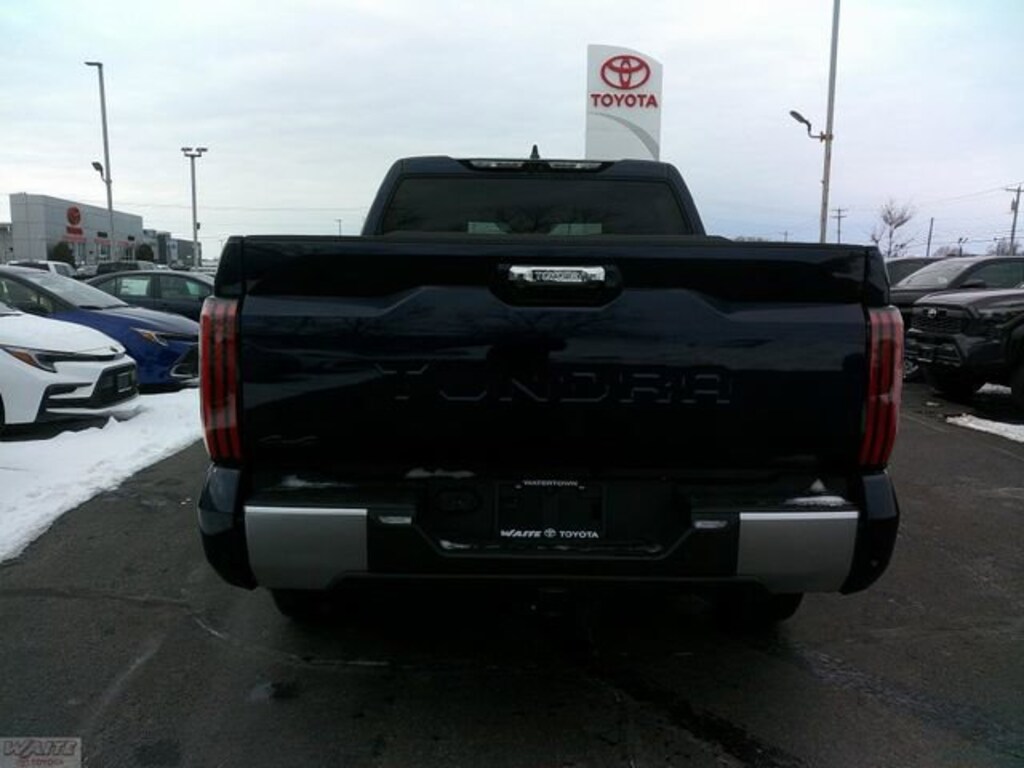 2026 Toyota Tundra LimitedToyota Safety Sense 2.5, Alloy wheels, AM/FM radio: SiriusXM, Apple CarPlay/Android Auto, Auto High-beam Headlights, Auto-dimming door mirrors, Auto-dimming Rear-View mirror, Automatic temperature control, Black Emblem Overlay, Blind Spot Monitor, Electronic Stability Control, Emergency communication system: Safety Connect (up to 10-year trial subscription), Exterior Parking Camera Rear, Front dual zone A/C, Garage door transmitter: HomeLink, Heated front seats, Heated Leather Steering Wheel, High Grade Full LED Headlamp, Memory seat, Panoramic View Back Monitor, Panoramic View Monitor Package, Power door mirrors, Power driver seat, Premium Package, Towing Package, Ventilated front seats. 17/22 City/Highway MPGWaite Toyota is family owned and operated, serving Northern New York since 1929.
